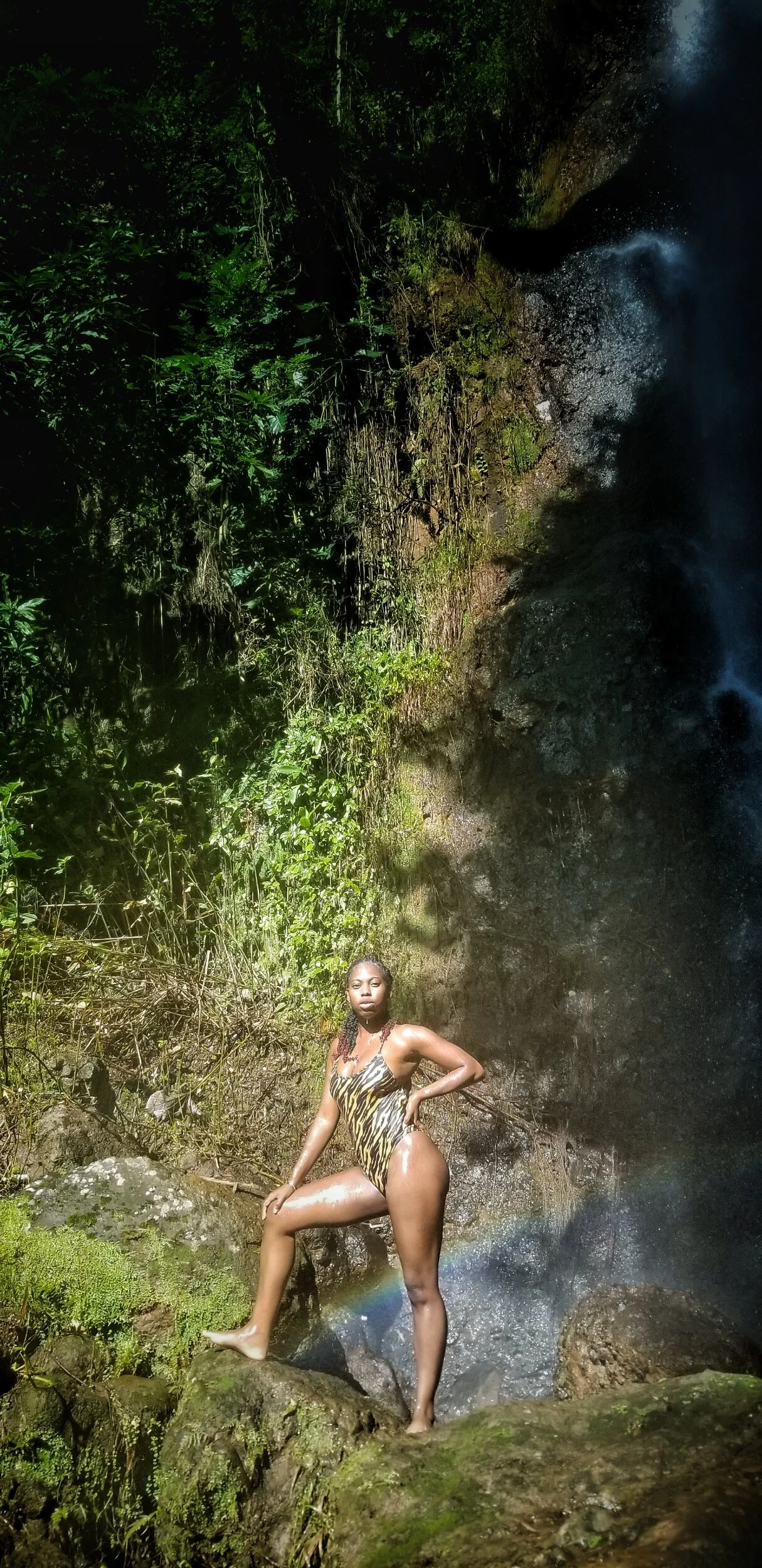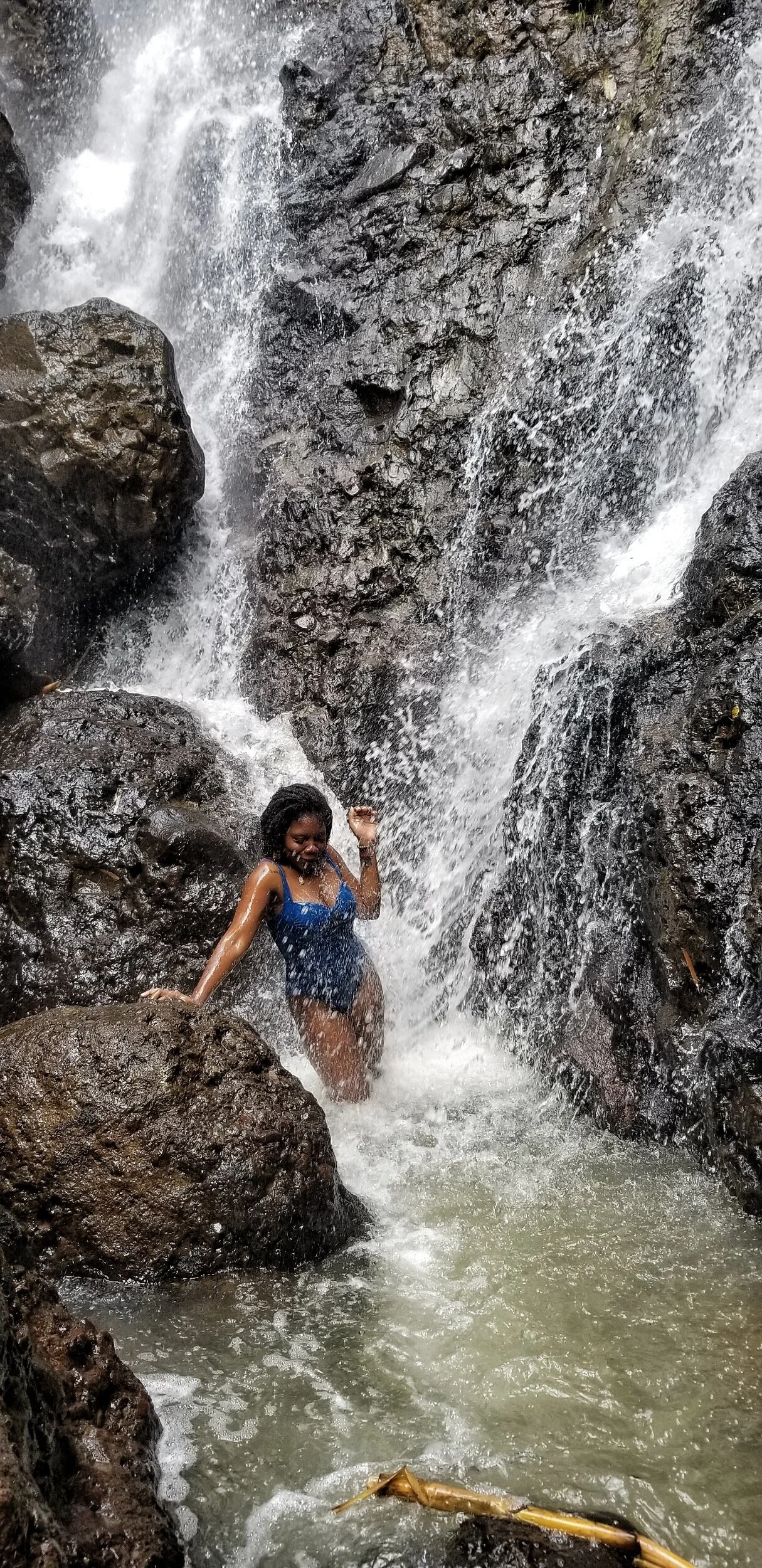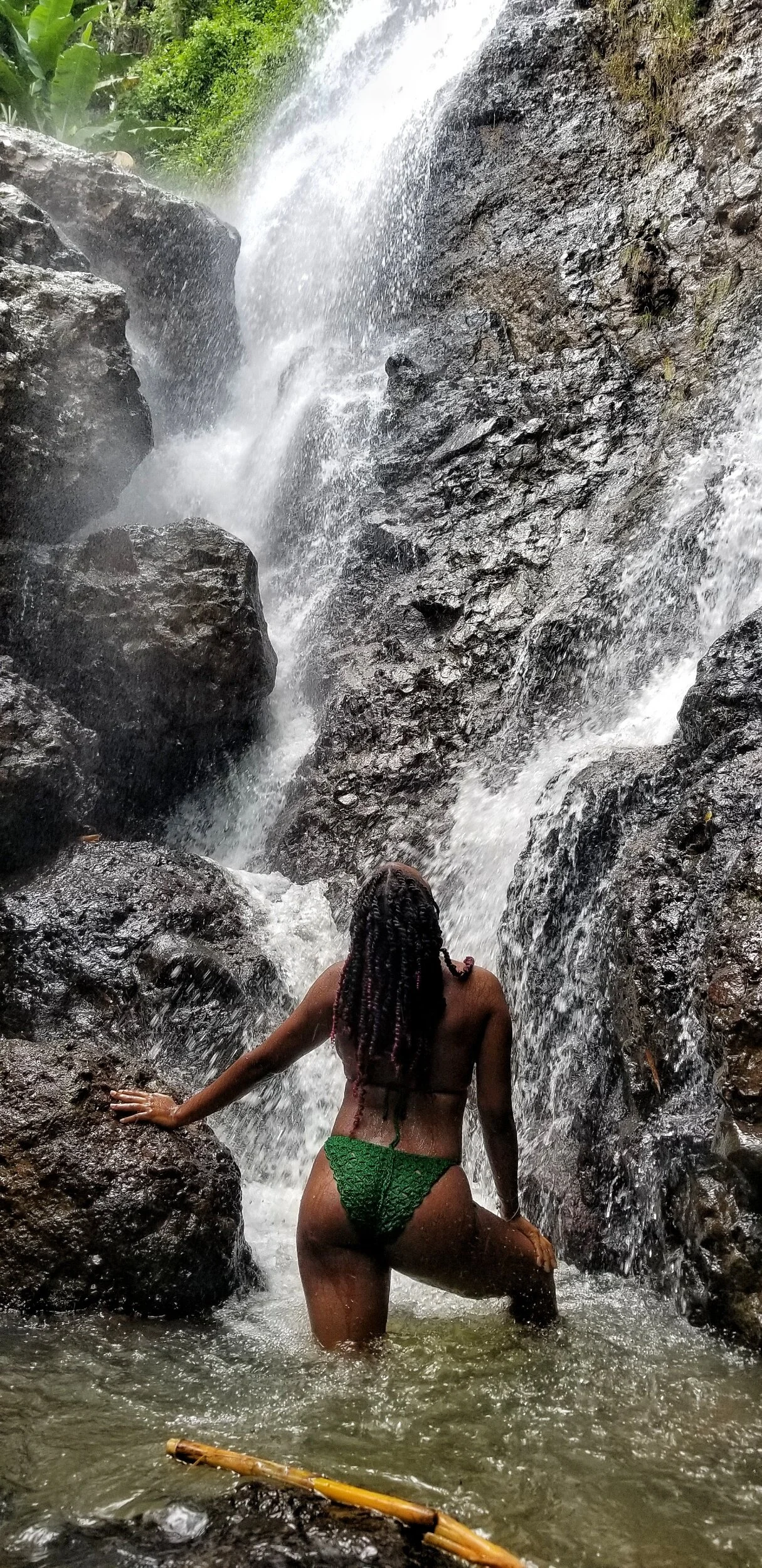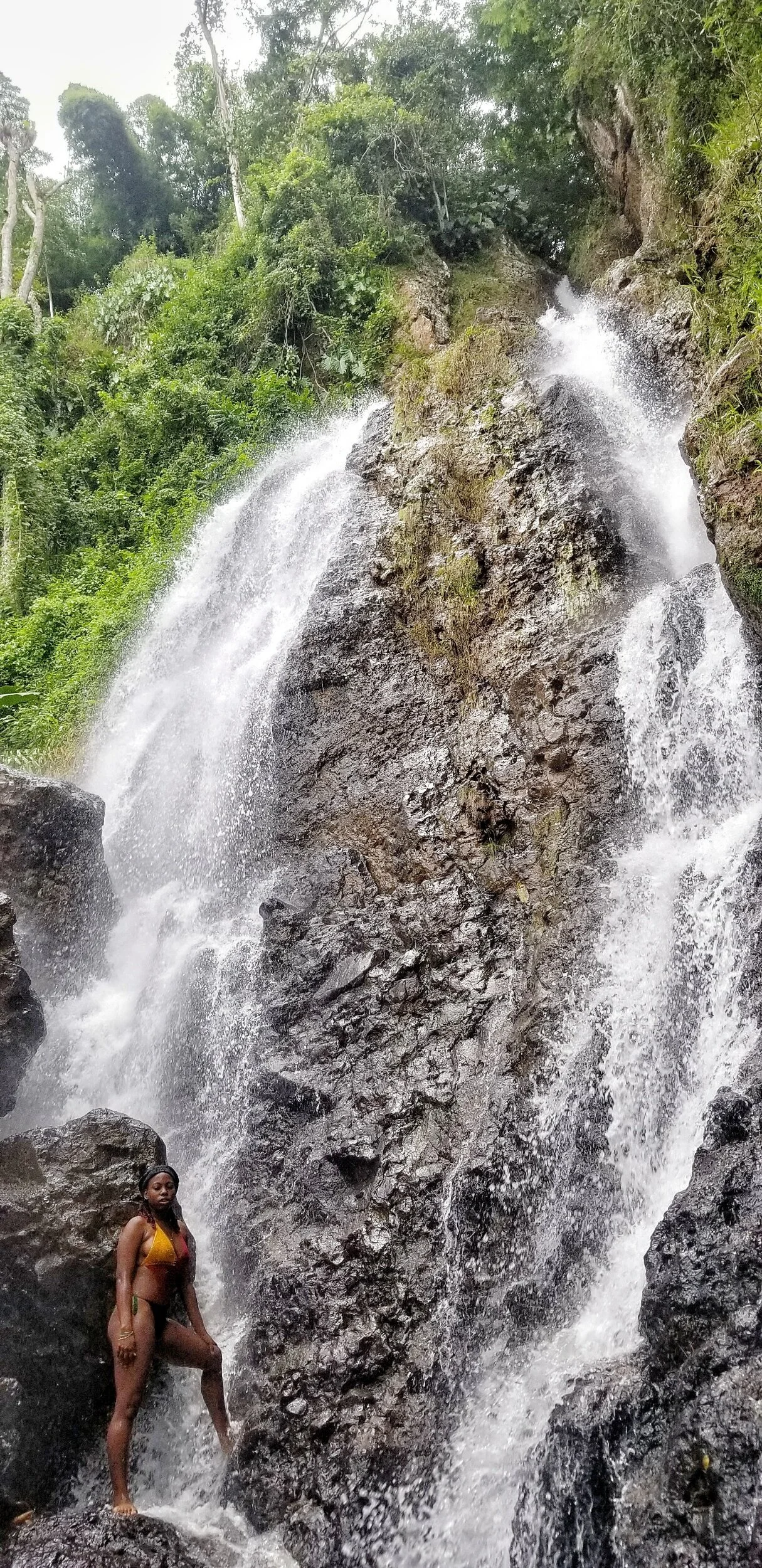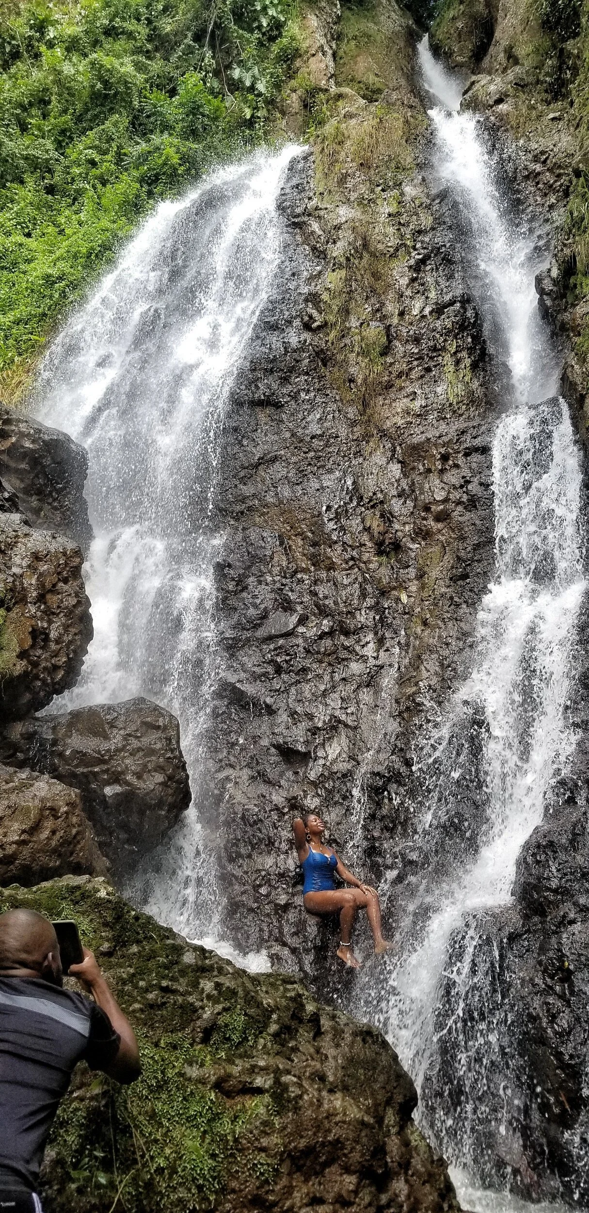 We spent around twenty minutes at Double cliff Waterfall then off to fall number three in James Hill Clarendon which was a twenty-minute hike according to Rayan. He also stated that waterfall number three was called Johnson Crawle Waterfall.