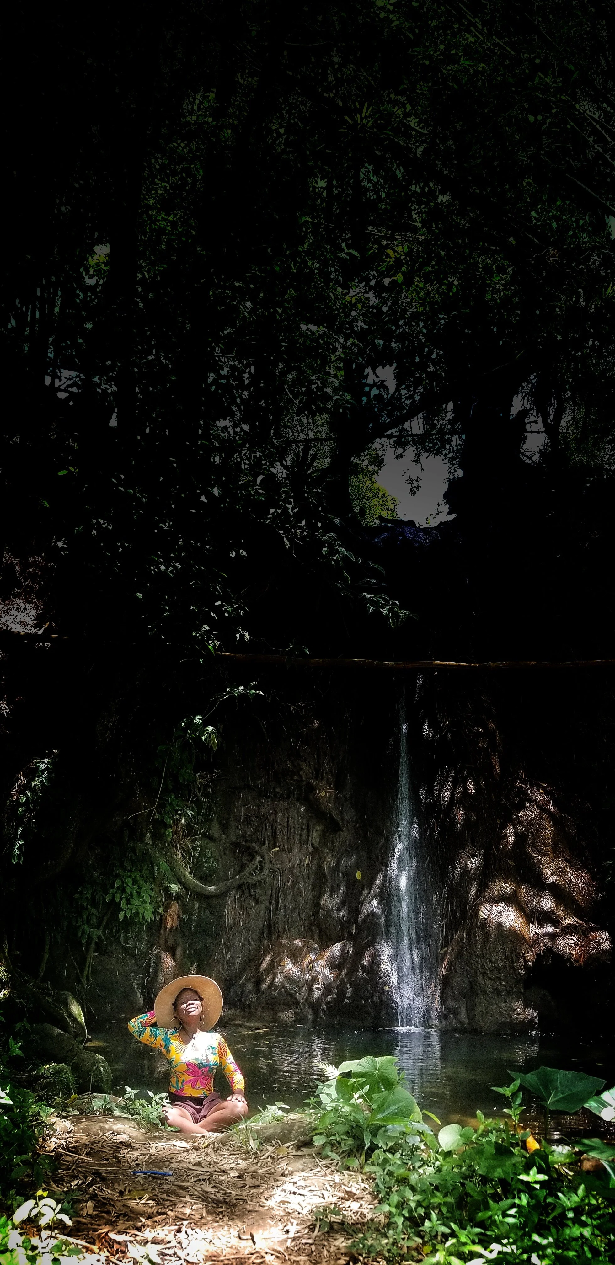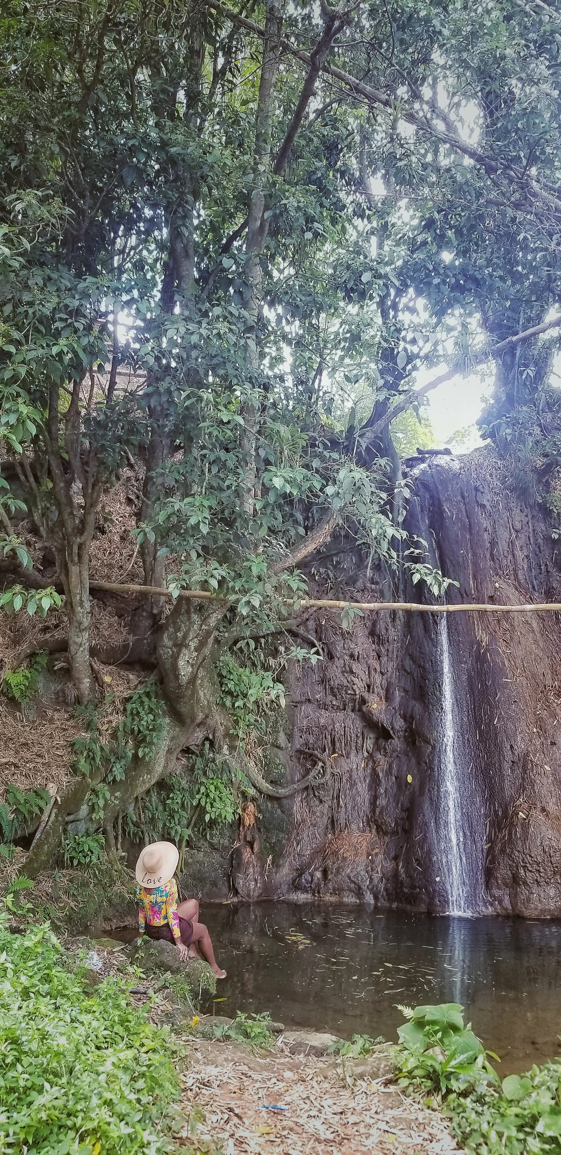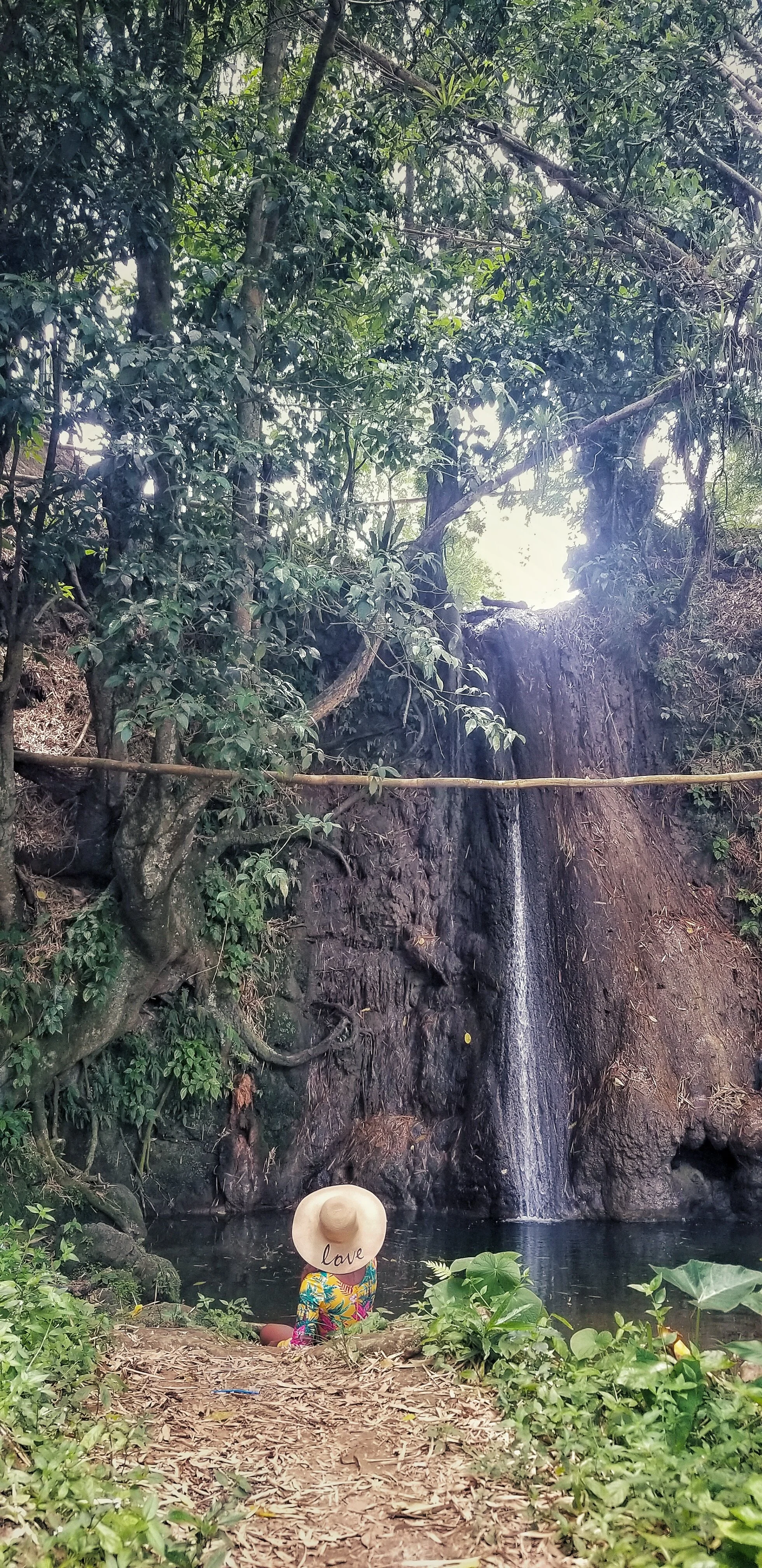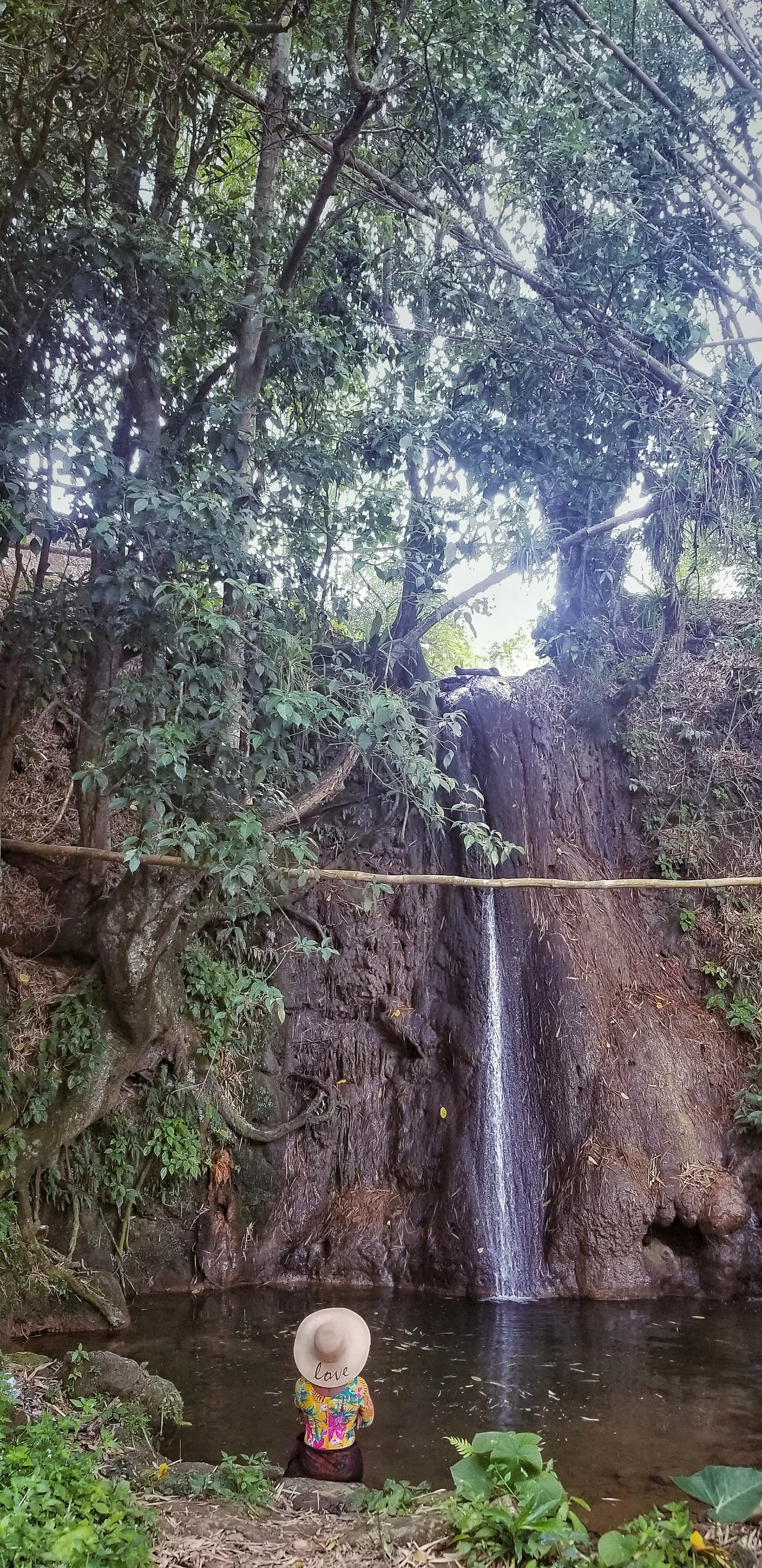 I wasn’t bothered because I could see the beauty behind the trickling waters dropping into the pond below.